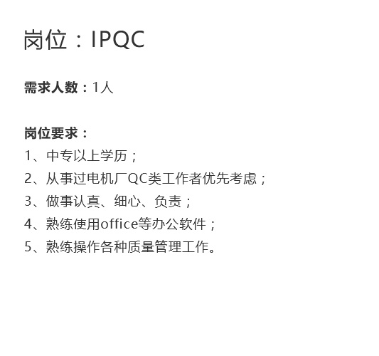 品質部招聘: