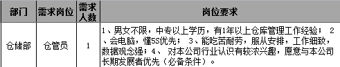 倉儲部招聘