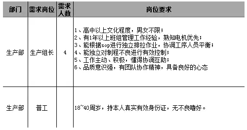 生產(chǎn)部招聘